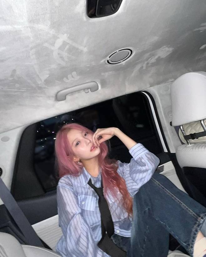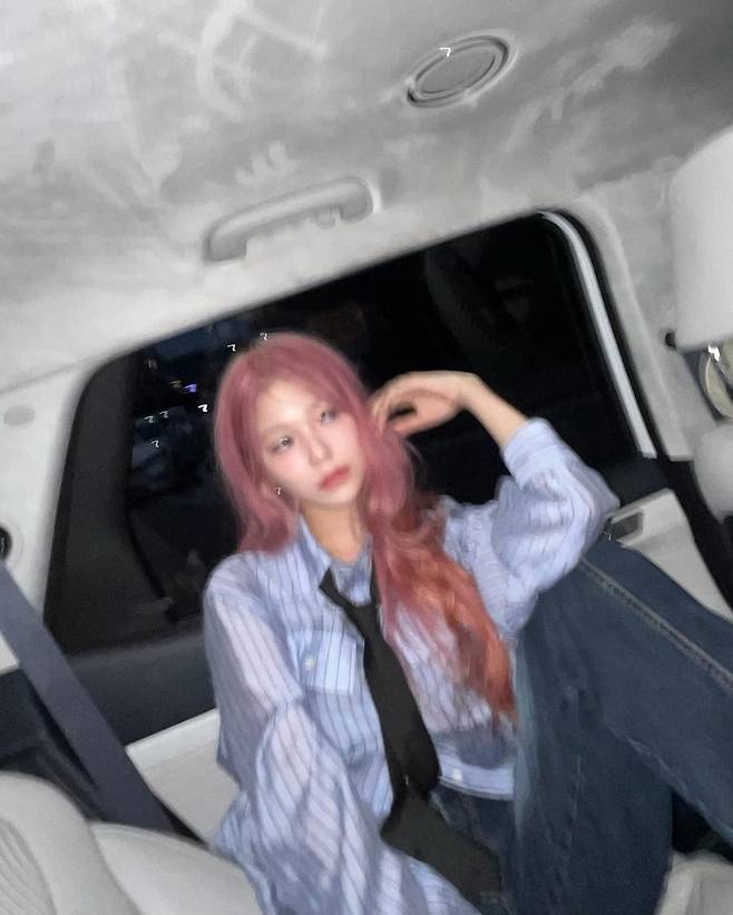 사진 속 백지헌은 평소의 '시그니처 눈웃음'과는 사뭇 다른 분위기를 풍겼다. 푸른색 셔츠에 검정 넥타이를 매치한 시크한 모습을 보여줬다. 여기에 핑크색 머리로 매력을 한층 더했다.