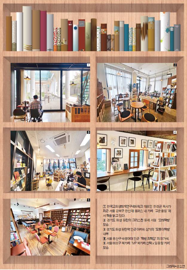 경기도 화성 동탄의 아파트촌 인근 ‘오래책방’은 크리스천이자 작가인 이정오(49) 대표가 지난해 4월 문을 열었다. 예능프로그램 방송작가로 살던 이 대표는 결혼과 육아로 경력이 단절된 동안 책을 탐독하며 경험한 삶의 변화를 나누려고 이곳을 시작했다고 한다. 글쓰기와 독서모임이 이뤄지는 공간과 책 읽는 장소는 커튼 하나로 구분돼 있다. 눈치 보지 않고 편안하게 책을 읽으라는 배려가 담겼다.