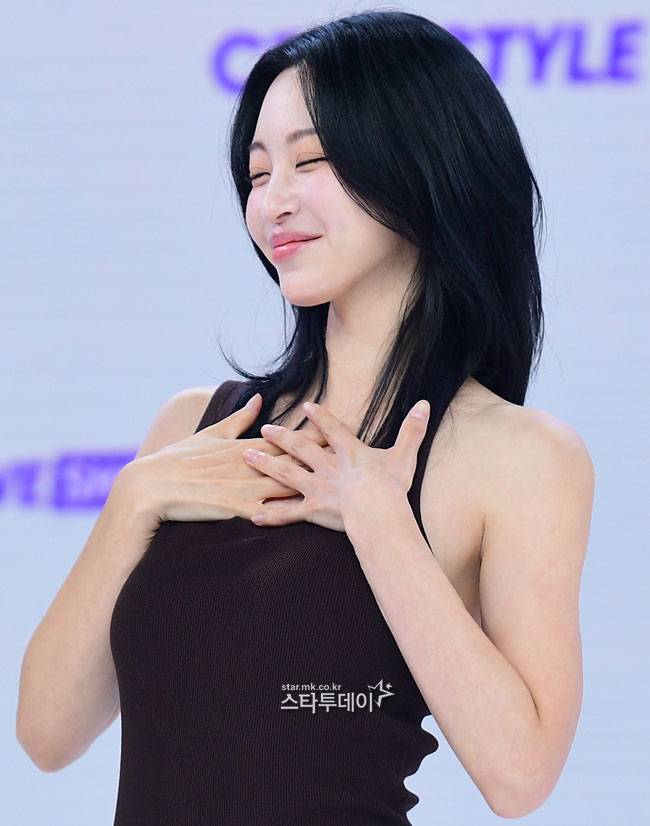 한예슬은 지난달 CJ온스타일 초대형 모바일 라이브쇼 제작발표회에 참석했다.