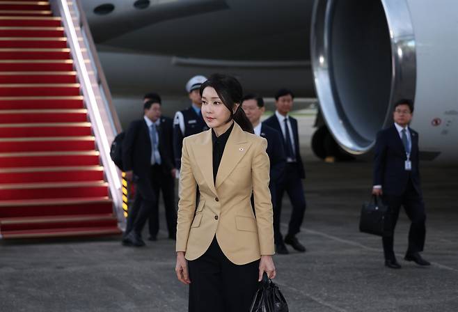 | ▲ 윤석열 대통령의 체코 방문에 동행했던 김건희 여사가 22일 성남 서울공항으로 귀국하고 있다. 2024.9.22 |