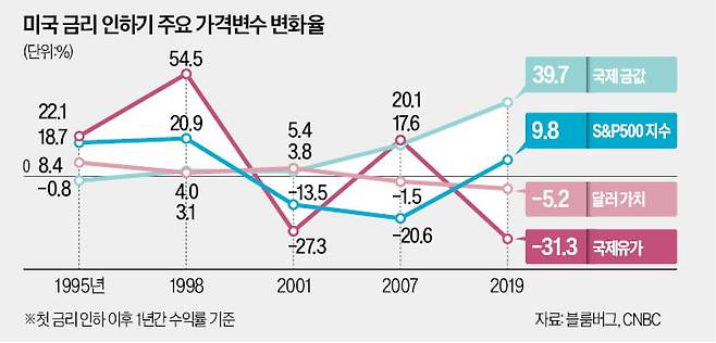 금리 인하가 증시에 반드시 호재인 것은 아니다. 경기 침체 우려 없이 시장금리와의 격차 등을 해소하는 미들 사이클 조정이라면 호재다. 1998년이 대표적인 사례로 첫 금리 인하 이후 1년 동안 S&P500지수가 20% 급등했다. 반면 경기 침체 국면 진입을 확인시켜주는 빅 사이클 조정이라면 악재다. 2007년의 경우로 S&P500지수가 20% 폭락했다.