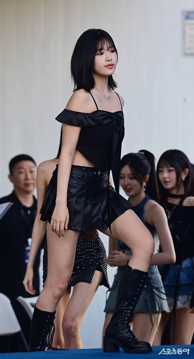 아이브 안유진이 22일 서울 잠실학생체육관에서 열린 ‘2024 펩시 페스타’ 포토월에 오르고 있다.