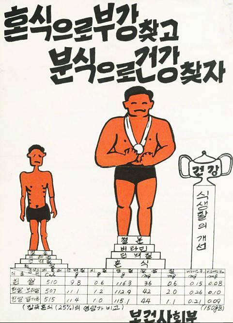 당시 라면은 손님이 와야 대접할 수 있는 고급 음식이었기에 서민들 사이에서 수요가 많진 않았다. 고전하던 라면이 입맛을 사로잡기 시작한 건 1960년대 박정희 정부의 ‘혼분식 장려정책’(포스터)을 통해서다. 혼분식은 쌀 소비 절약을 위해 잡곡을 섞어 먹는 혼식과 밀가루 음식을 섭취하는 분식을 합친 말이다.