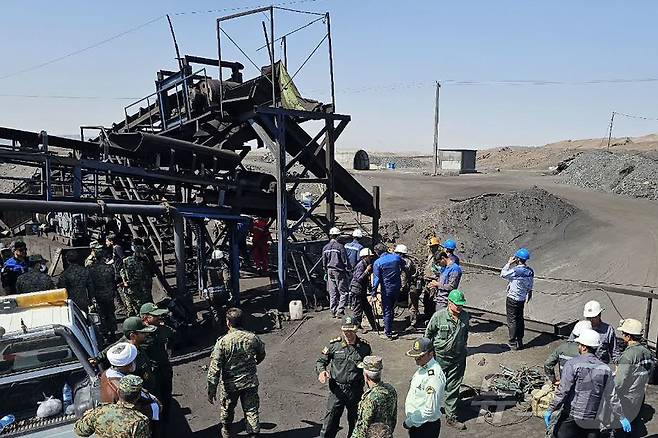 (타바스 AFP=뉴스1) 우동명 기자 = 22일(현지시간) 이란 남호라산주 타바스에 있는 석탄 광산에서 메탄가스 누출로 폭발 사고가 발생해 최소 51명이 숨진 현장의 모습이 보인다. 2024.09.23
