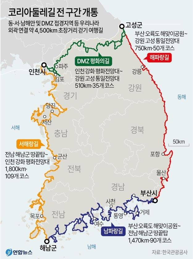 ‘코리아둘레길’ 4500㎞ 전 구간 완성