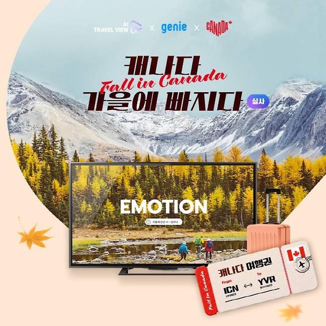 지니 TV 고객은 10월 13일까지 지니 TV의 'VOD>뮤직' 메뉴에서 AI트래블뷰 캐나다 편을 무료로 무제한 감상할 수 있다. KT는 이후 겨울 테마의 휴양지 콘텐츠도 업데이트할 계획이다.
