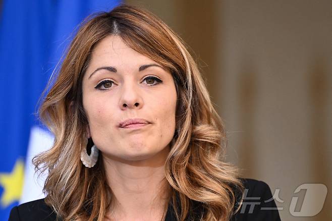 (파리 AFP=뉴스1) 김지완기자 = 새로 출범한 프랑스 미셸 바르니에 총리 정부의 대변인으로 임명된 모드 브레죤 (Maud Bregeon·33)이 23일 대변인 이취임식에 참석하고 있다. 현역의원인 그는 에마뉘엘 마크롱 대통령의 소속 정당인 르네상스 당대변인을 역임했다. 2023.09.23