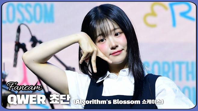 그룹 QWER 쵸단이 23일 오후 서울 창천동 예스24 원더로크홀에서 열린 두 번째 미니앨범 'Algorithm's Blossom(알고리즘스 블러썸)' 발매 기념 쇼케이스에 참석해 공연을 펼치고 있다.