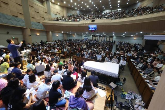 강대상 옆 설교단까지 초등학생 아이들로 가득 찼다.