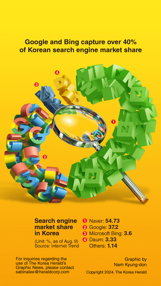 [Graphic News] Google and Bing capture over 40% of Korean search engine market share