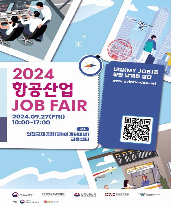 또 기업과 구직자 간 1대 1 상담, 하반기 또는 2025년 상반기 채용 설명회, 최신 국내외 항공산업 동향 및 미래 항공 일자리 관련 흐름을 소개하는 명사 강연·특강, 취업 선배 토크 콘서트 등도 준비되어 있다.