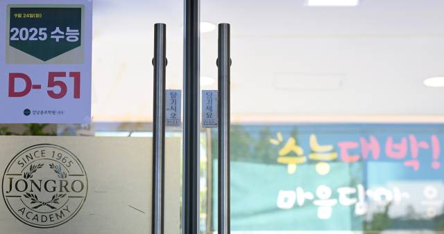 ‘2025학년도 대학수학능력시험평가‘ D-50일을 하루 앞둔 24일 서울 강남구 종로학원 대치점에 수능 디데이 안내문이 붙어 있다. 김규빈 기자 2024.09.24