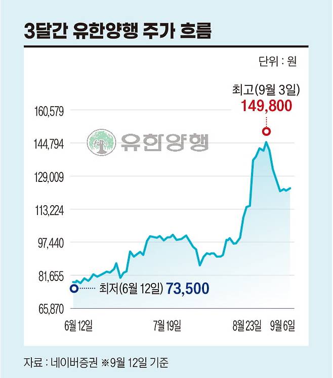 이 같은 정보에 따라 유한양행 주가는 연초 6만원대에서 FDA 품목허가 승인이 임박하며 10만원을 돌파했다. 그리고 8월 20일(현지 시간) FDA 승인 소식이 알려지자 9월 3일 14만9800원에 최고점을 기록하기까지 파죽지세로 올랐다. 뉴스가 알려진 초기에는 차익을 보려는 매물들이 나오면서 오름세가 주춤했으나 기관과 외국인이 순매수를 기록하며 상승흐름을 이어갔다.