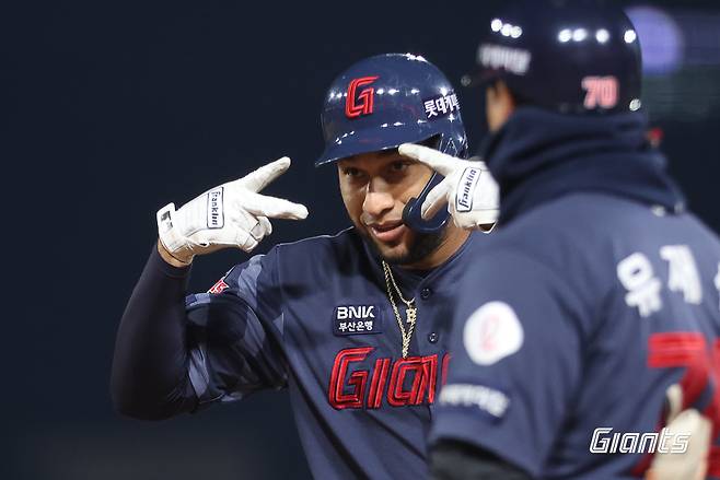 전날(24일) 수원 KT 위즈전에서 4타수 1안타를 기록, 2017년 손아섭(193안타)을 넘어 롯데 타자 단일 시즌 최다 안타 1위(194개) 기록을 세운 레이예스는 이날(25일)도 안타 기계를 작동했다.