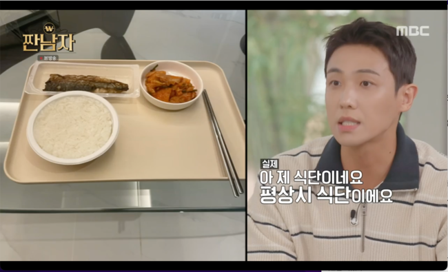 이준의 밥상 사진을 본 김종국은 "이거 뭐예요?"라고 물었고, 이준은 "아 제 식단이네요. 평상시 제 식단이에요"라고 설명했다.
