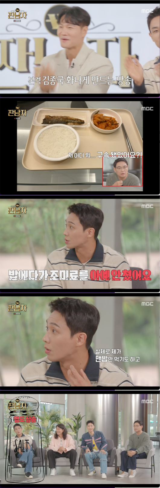 프로그램의 의도를 설명하는 김종국은 “보통은 아주 가깝거나 친분이 있어야 짠소리를 했는데, 하라고 하니까 하는 거다”라고 말해 웃음을 안겼다. 패널로 이준, 임우일, 이승훈, 그리고 박영진이 자리했고, 이들의 염도 체크에 들어갔다.