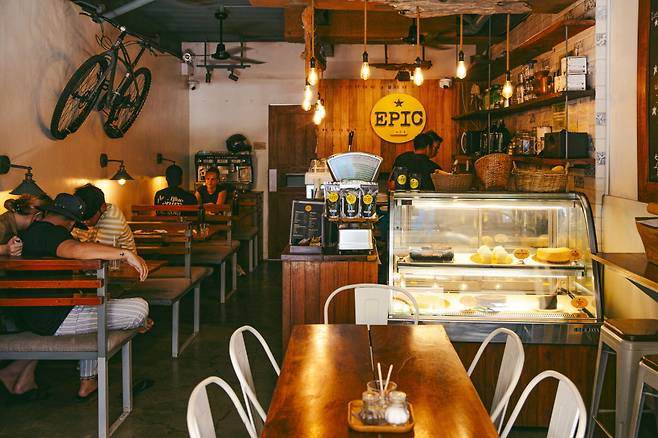 식당과 카페는 코론-부수앙가로드(Coron-Busuanga Rd), 리얼 스트리트를 중심으로 밀집해 있는데, 에픽 카페 코론(Epic Cafe Coron)과 맥 카페 & 바(MC Cafe & Bar)가 인기다. 에픽 카페 코론은 아침과 점심으로 활용하기 좋다. 다양한 커피 메뉴(시그니처 - 타그바누아 커피· 시솔트 캐러멜 라떼·에픽 프라페)와 맥주, 차, 주스, 셰이크 등이 있고, 밥 또는 토스트 & 달걀이 포함된 올데이 브렉퍼스트(베이컨 & 달걀·와규 콘비프·스페니쉬 초리조·파니니 샌드위치 등), 피자(시푸드·베이컨·치즈·베지테리언 등), 보울(그라놀라·가든), 케이크(뉴욕치즈케이크·에스프레소 케이크 등) 등 식사와 디저트 메뉴도 갖췄다. 오전 7시부터 오후 10시까지 긴 영업시간도 장점이다.