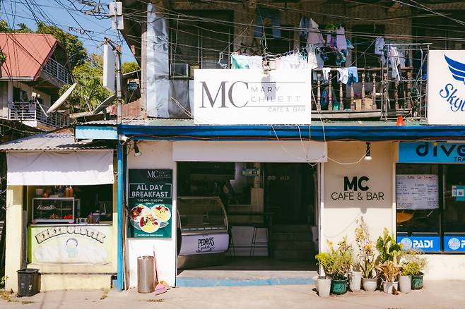 맥 카페 & 바는 식당이자 쉼터다. 왜냐고? 코론에서 호텔을 제외하고 에어컨을 켜는 공간이 많지 않은데, 맥 카페는 언제나 시원하다. 서양인을 비롯해 많은 여행자가 무더운 오후를 안전하게 보내기 위해 몰려든다. 메뉴도 파스타와 피자 같은 양식, 디저트, 커피, 주류로 구성돼 있다. 노트북을 가져오는 이들도 있고, 낮술을 즐기는 여행자도 쉽게 볼 수 있다.