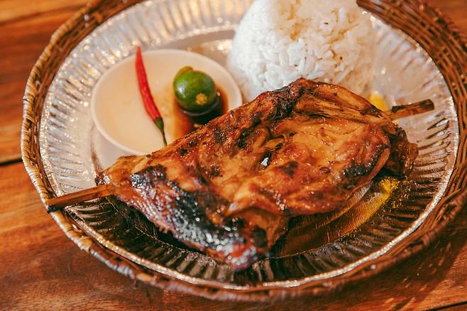 코론에서도 필리핀 전통의 맛을 경험할 수 있다. 각종 고기로 만든 시시그, 소고기 조림 같은 칼데레타, 간장 양념으로 구워낸 오징어 등으로 필리핀의 감성을 느낄 수 있다. 날씨가 더워서 그런지 필리핀 음식은 대체로 양념 간이 세다. 짠맛도, 단맛도 선명하다. 자연스럽게 밥을 찾게 되는데, 지금 소개하는 이나살(Inasal)도 마찬가지다.