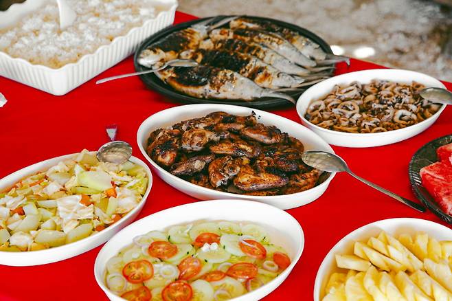 호핑투어가 8~9시간 정도 진행되다 보니 대부분 상품에 식사와 간식이 포함된다. 여행자들이 바다와 호수에서 신나게 놀고 있는 동안에 선원들이 미리 밥상을 준비한다. 생선구이(주로 흰살생선으로 한국인 입맛에 잘 맞음)와 필리핀식 양념에 버무린 닭고기 & 오징어 숯불구이 등의 단백질이 메인 반찬이고, 밥, 샐러드, 과일 등이 뷔페식으로 차려진다. Beach 91에 몸을 한 번 담그고, 식사하고 다시 수영하면서 코론에 스며들게 된다.