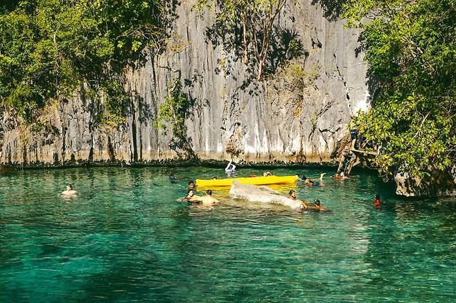 트윈라군 중심에 다다르면 가벼운 바다 수영을 즐길 수 있는 지점이 나오고, 해저 터널을 지나면 또 다른 세계가 열린다. 엄청난 높이의 암벽을 배경으로 카약을 즐기고, 마음껏 바다에서 둥둥 떠다닐 수도 있다. 완전한 바다 수영이라 조금 무서울 수도 있는데, 그래도 괜찮다. 보트 지붕에 올라가 누워만 있어도 좋고, 보트 바로 옆에서 가볍게 물장구를 쳐도 된다.