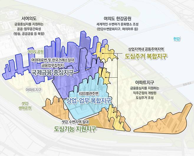 오세훈 서울시장은 지난해 3월 런던 컨퍼런스에서 "여의도를 국제금융중심지 특화형 주거단지로 조성하겠다"는 비전을 발표하고 용도지역 상향, 용적률 인센티브 제공, 높이규제 완화 등 대폭적인 지원 구상을 발표했다. 이어 같은해 5월에는 용적률을 최고 1200%까지 허용하는 내용의 지구단위계획안을 마련해 시민에게 공개했다.