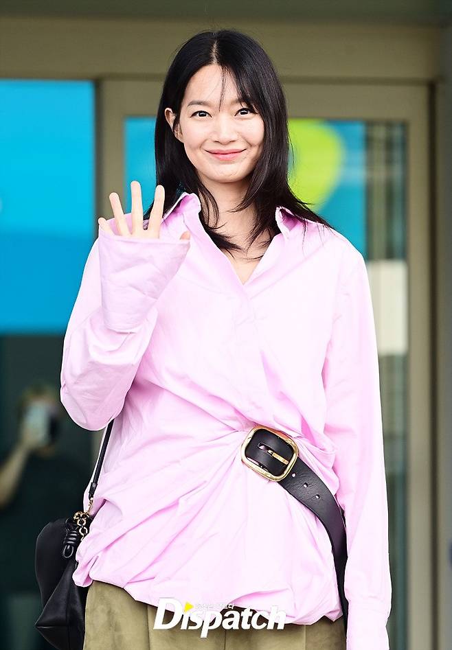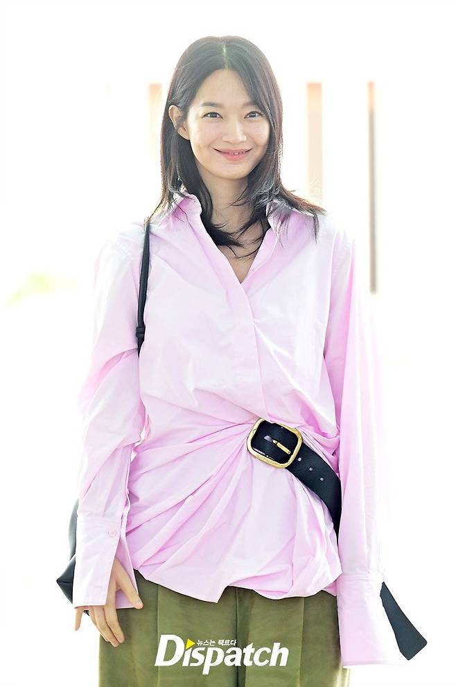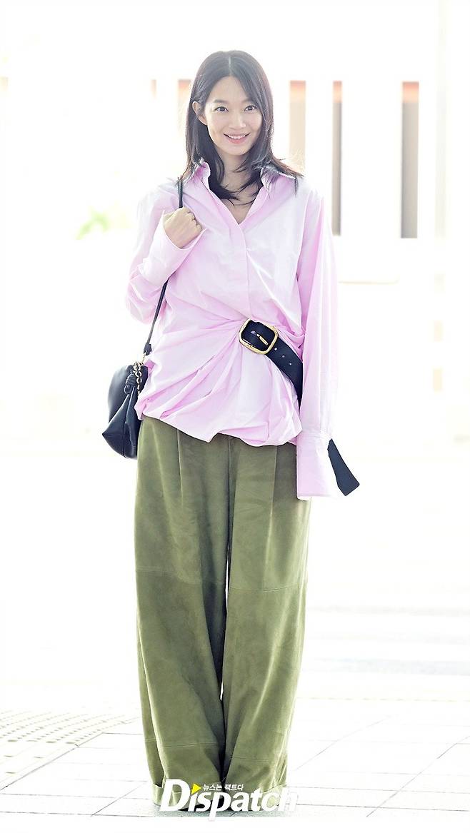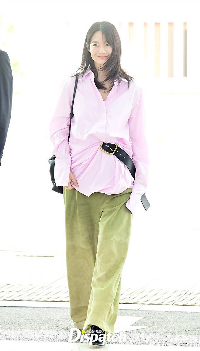 신민아는 핑크 컬러의 오버핏 셔츠와 와이드진으로 세련된 공항패션을 연출했다. 여전히 변함없는 눈부신 미모가 돋보였다.