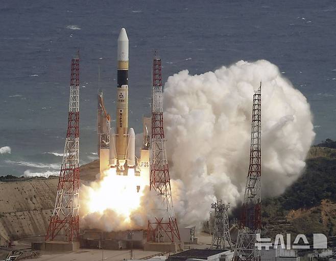 [다네가시마=AP/뉴시스] 26일 일본 가고시마현 다네가시마 우주 센터 발사대에서 정부 정찰 위성을 실은 H2A 로켓 49호기가 발사되고 있다. 2024.09.26.