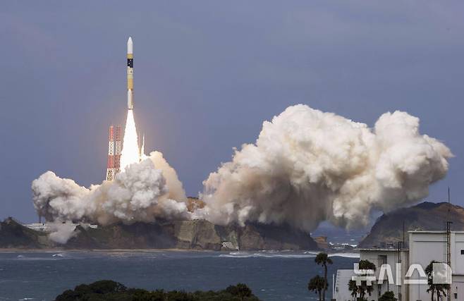 [다네가시마=AP/뉴시스] 26일 일본 가고시마현 다네가시마 우주 센터 발사대에서 정부 정찰 위성을 실은 H2A 로켓 49호기가 발사되고 있다. 2024.09.26.