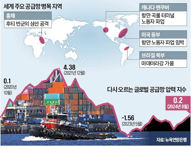 글로벌 물류 공급망이 ‘파업 리스크’에 다시 흔들리고 있다. 세계 4위 밀 수출국인 캐나다에서는 수확기를 앞두고 곡물 터미널이 가동을 멈췄다. 미국에서는 동·남부 항만 모두 수일 내 마비될 위기에 처하자 기업들이 웃돈을 주고서라도 대체 운송로를 찾고 있다.