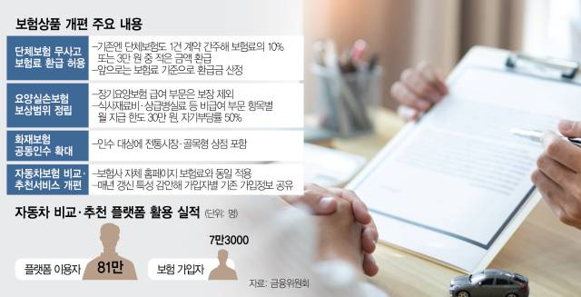 금융 당국이 여행 중 사고가 일어나지 않으면 보험료 일부를 돌려주는 이른바 ‘무사고 환급금’을 단체보험에도 허용한다. 장기 요양실손보험은 급여 부문을 보장 대상에서 빼 과잉 진료로 인한 재정 누수를 막기로 했다.