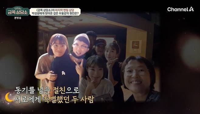 박성광은 "우리 사이에서 금지 단어처럼 된 것도 안타깝다. 지선이와 코너도 많이 했고, 에피소드도 많았다"라며 추억을 떠올렸다. 오은영은 "즐거움을 느낄 때 떠난 친구에게 미안하냐"라고 조심스럽게 물었다. 박성광은 눈물을 보이며 말을 잇지 못하다가 "무대에 설 때 좀 그렇다. 가끔가다 그런 생각이 들 때가 있다. 내가 잘 지내고 있는 게 미안하고, 생각을 안 하려고 하면 안 하는 것도 미안하다"라고 전했다. 박성광은 "유튜브 알고리즘으로 지선이 영상이 뜨면 웃으면서 봤다가 그게 미안하기도 하고"라고 고백했다.