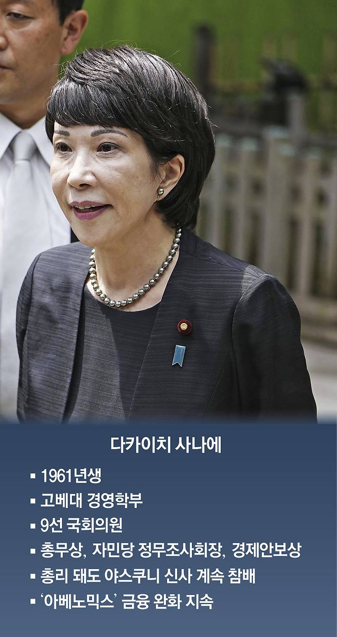 전문가들은 3강 후보 중 다카이치 경제안보상이 당선될 경우 한일 관계에 악영향을 미칠 수 있다고 우려한다. 강경 보수 성향인 다카이치 경제안보상은 총리가 돼도 야스쿠니신사에 참배하겠다는 의지를 드러냈다. 지난해 한국의 강제징용 배상 대법원 판결에 대한 제3자 변제안 발표 후 어렵게 개선된 한일 관계가 다시 악화 일로로 치달을 수 있다는 것이다.
