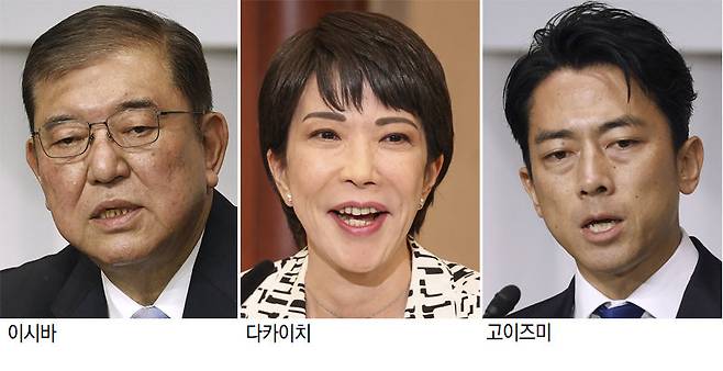차기 일본 총리가 될 집권 자민당 총재를 뽑는 선거가 27일 치러진다. 이시바 시게루(石破茂) 전 자민당 간사장, 다카이치 사나에(高市早苗) 경제안보상, 고이즈미 신지로(小泉進次郎) 전 환경상이 겨루는 3파전 양상이다. 한일 관계 개선을 치적으로 내세우는 기시다 후미오(岸田文雄) 총리 후임으로서 누가 당선되든 한일 관계는 물론 한미일 협력, 동아시아 정세에 큰 영향을 미칠 것으로 보인다.》