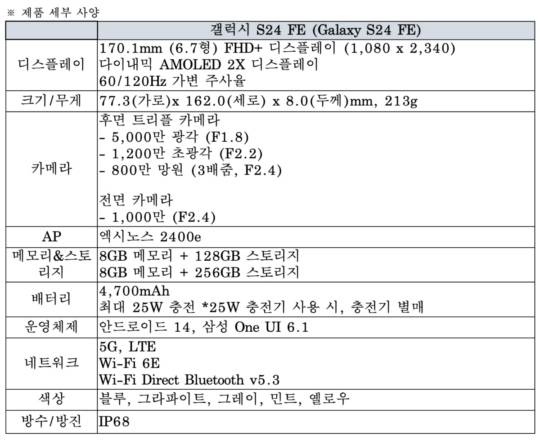 갤럭시 S24 FE는 10월 3일부터 순차 출시된다. 국내 출시 일정은 추후 공개 예정이다.