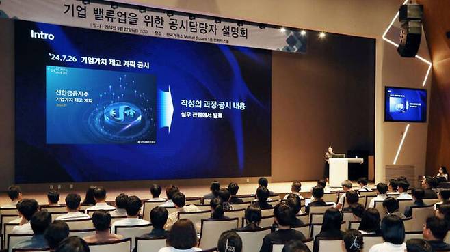 한국거래소는 오늘(27일) 상장 기업을 상대로 기업 밸류업 공시 담당자 설명회를 열었다고 밝혔습니다.