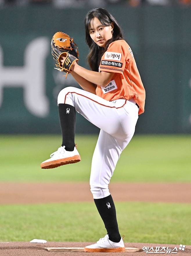 (엑스포츠뉴스 대전, 김한준 기자) 27일 오후 대전 한화생명이글스파크에서 열린 '2024 신한 SOL Bank KBO리그' KIA 타이거즈와 한화 이글스의 경기, 경기 전 소녀시대 유리가 시구에 임하고 있다.