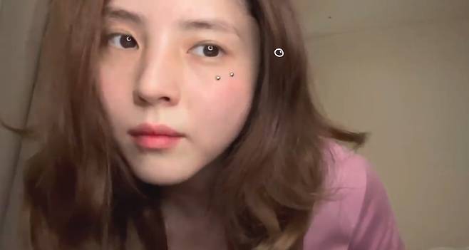 한소희는 "피어싱 스티커를 한번 붙여볼까요?"라며 "제가 전에 뚫었던 곳에"라며 얼굴에 피어싱 스티커를 붙였다.