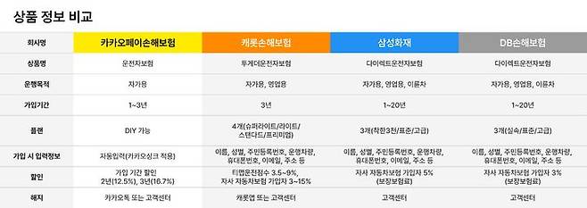 먼저 디지털손해보험사인 카카오페이손해보험과 캐롯손해보험은 3년 이내 단기 일반보험 형태의 운전자보험을 제공한다. 가입 기간이 짧다 보니 교통법규 개정 등에 따른 대비가 수월하다는 장점이 있다. 불필요한 보장을 줄여 가입자들의 보험료 부담을 낮춘 점도 특징이다.