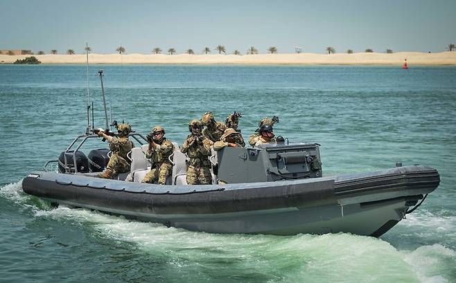 아크부대는 아랍에미리트(UAE)에 파병돼 군사훈련 및 협력, 재외국민 보호 등의 임무를 수행하고 있다. 사진은 아크부대 UDT 대원과 UAE군이민간 선박이 납치된 상황을 가정해 선박 침투·수색·선원 안전을 확보하는 VBSS 훈련을 하는 모습. (사진=합동참모본부 제공) 2024.09.29. photo@newsis.com *재판매 및 DB 금지