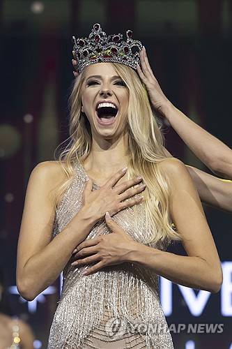 Laura Bircher celebrates as she is crowned the new Miss Universe Switzerland during the Miss Universe Switzerland competition in Bern, Switzerland, Saturday, Sept. 28, 2024. (Peter Klaunzer/Keystone via AP) MANDATORY CREDIT