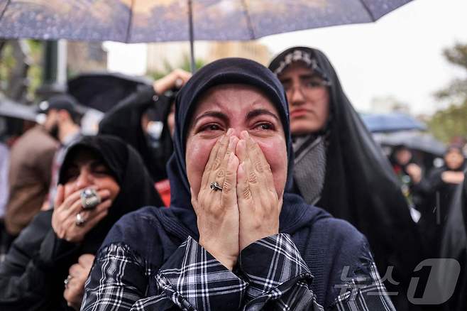(테헤란 AFP=뉴스1) 우동명 기자 = 28일 (현지시간) 이란 테헤란의 팔레스타인 광장에서 이란 인들이 레바논 무장단체 헤즈볼라의 수장 하산 나스랄라가 이스라엘 군의 공습으로 사망에 오열을 하고 있다. 2024.09.29