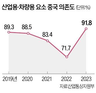 2021년 중국발 요소수 대란을 계기로 공급망을 다변화한 차량용 요소도 다시금 중국에 종속됐다. 한국은 수입처를 다변화해 중국산 요소 의존도를 2021년 83.4%에서 2022년 71.7%로 낮췄지만 지난해 중국산 의존도는 다시 90%를 넘었다. 요소수를 구매하는 국내 기업들이 가격이 싼 중국산만 찾은 결과다.