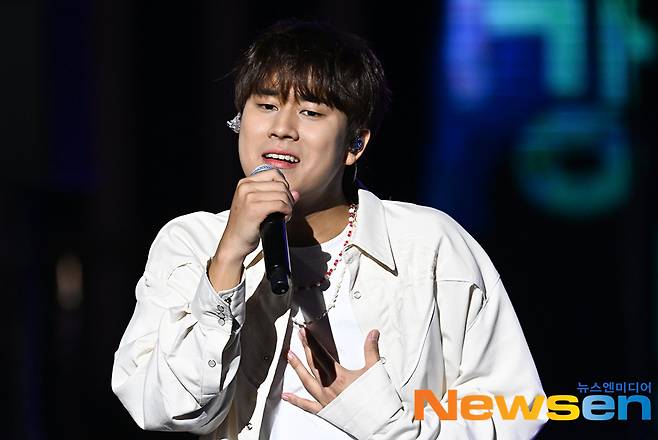 가수 이무진이 9월 29일 오후 서울 강남구 코엑스(COEX) 동측광장 특설무대에서 열린 ‘2024 영동대로 K-POP 콘서트’에 참석해 무대를 펼치고 있다.