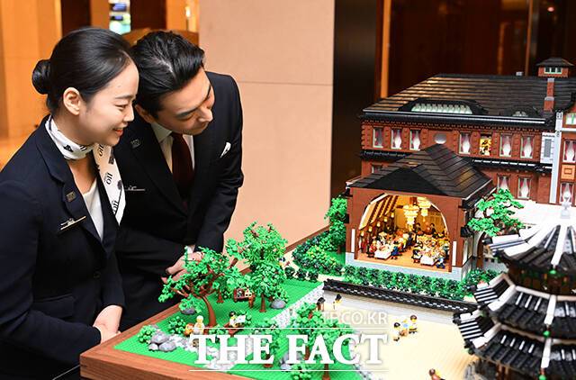 '헤리티지 조선호텔로 시간여행'은 조선호텔앤리조트가 개관 110주년을 맞이해 1914년 개관 당시 조선호텔의 모습을 10만 개의 레고 브릭으로 재현한 기획전시다.
