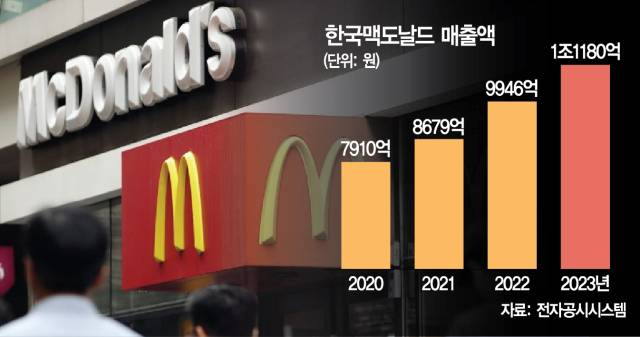 한국맥도날드는 지난해 직영 매출이 전년 대비 12.4% 증가한 1조1180억 원으로 한국 진출 이후 처음으로 ‘1조 클럽’에 이름을 올렸다. 가맹점을 포함한 전체 매출은 1조2920억 원으로 역대 최대 실적을 올렸다. 319억 원의 당기순손실을 기록했으나 전년 보다 적자 규모를 줄였다. 단기차입금은 3311억 원에서 1522억 원으로 줄이면서 부채비율도 낮췄다.