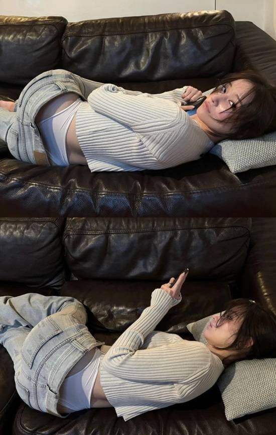 전종서는 30일 개인 계정에 소파에 누워 포즈를 취하고 있는 모습을 담은 사진을 올렸다. 이때 전종서는 헐렁한 청바지를 입고 언더웨어를 그대로 노출하고 있는 모습.