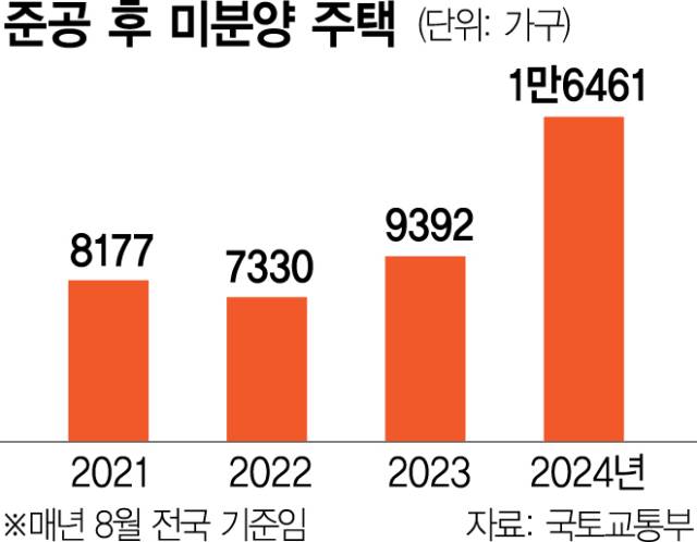 국토교통부가 30일 발표한 '8월 주택통계'에 따르면 지난달 전국의 준공 후 미분양 주택은 1만 6461가구로 전월(1만 6038가구)보다 2.6% 증가했다.