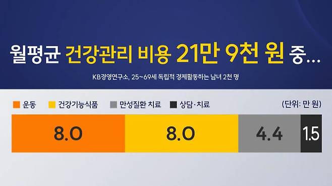KB 금융연구소가 '2024년 웰니스 보고서'란 분석을 내면서 밝힌 조사 결과입니다. 25세부터 69세까지 독립적인 경제활동을 하는 남녀 2천 명에게 설문조사와 일부 심층 면접조사를 함께 진행한 결과입니다.