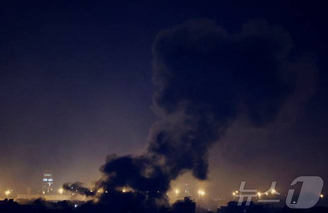 (베이루트 로이터=뉴스1) 우동명 기자 = 1일 (현지시간) 레바논 베이루트 남부 교외 지역에서 헤즈볼라와 분쟁 중인 이스라엘 군의 포격을 받아 검은 연기가 솟아 오르고 있다. 2024.10.01